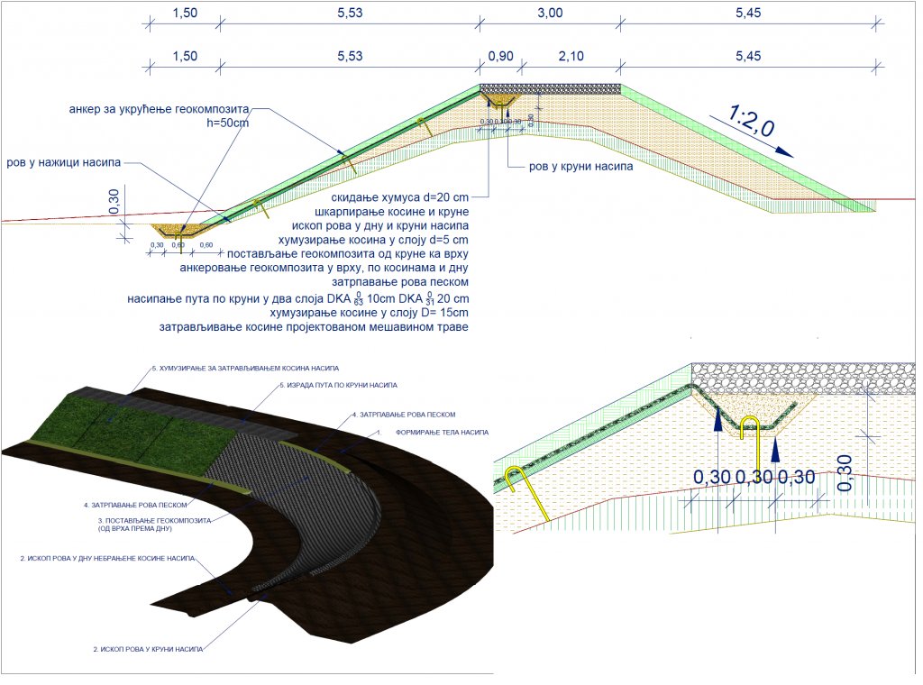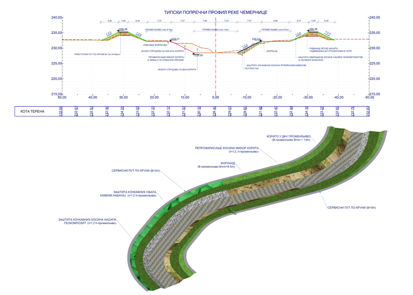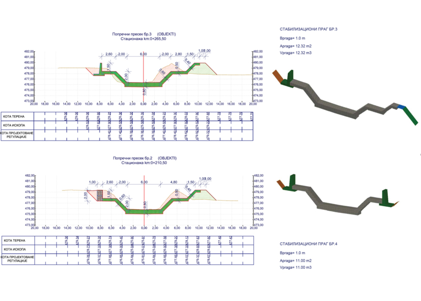 Dimenzionisanje vodnih objekata: nasipa, pregrada, ustava, obaloutvrda, brana, napera i drugih objekata u skladu sa BIM standardom koji garantuje brzinu u radu, tačnost procene obima radova i količina i investicione vrednosti projekta. Projektni menadžment i praćenje radova za vreme izvođenja, brze izmene tehničkih rešenja i prilagođavanje uslovima na terenu.